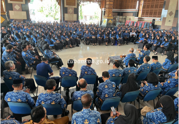 Tubankab - Ribuan warga Muhammadiyah memadati Lapangan GOR Ranggajaya Anoraga Tuban untuk melaksanakan Salat Idulfitri 1446 Hijriah, Jumat (20/3) …