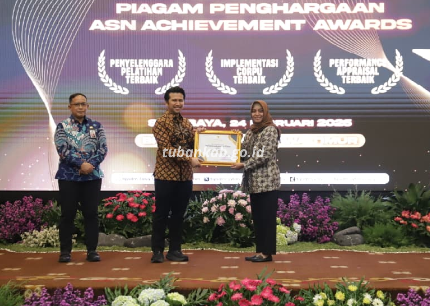 Tubankab - Pemerintah Kabupaten Tuban kembali meraih penghargaan tingkat Provinsi Jawa Timur. Badan Kepegawaian dan Pengembangan Sumber Daya Manusia Kabupaten Tuban memperoleh Peringkat II Penyelenggara Pelatihan Terbaik dari Badan Pengembangan Sumber Daya Manusia Provinsi Jawa Timur dalam ajang ASN Achievement Award 2025 se-Jawa Timur.