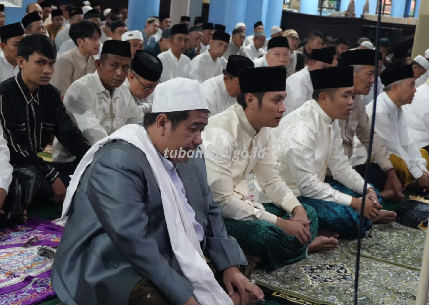 Tubankab – Bupati Tuban Aditya Halindra Faridzky yang akrab disapa Mas Lindra bersama Wakil Bupati Joko Sarwono menunaikan Salat Idulfitri 1447 Hijriah di Masjid Agung Tuban, Sabtu (21/3). Keduanya hadir bersama keluarga dan berbaur dengan jajaran Kepala OPD beserta keluarga dalam suasana kebersamaan yang hangat.