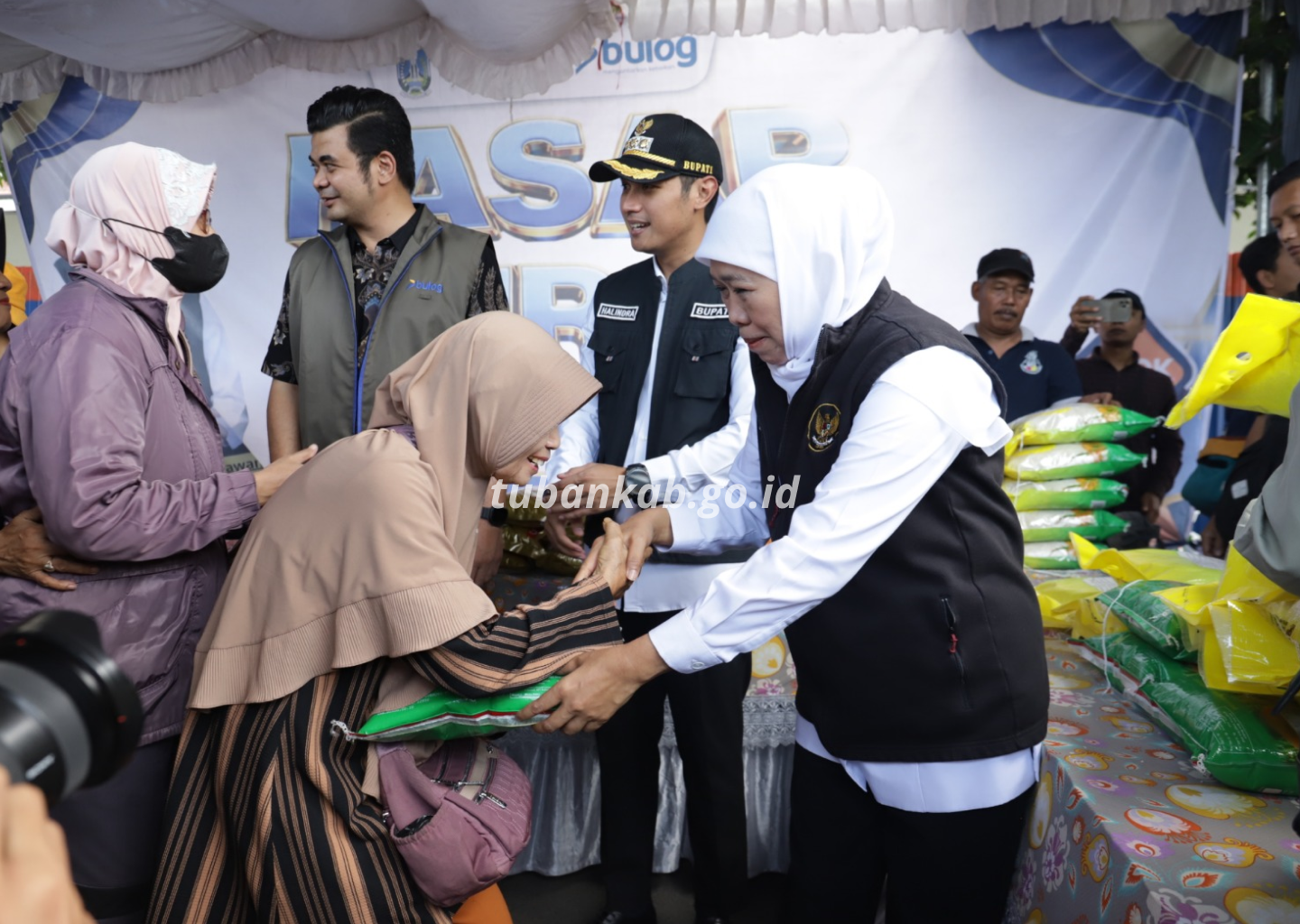 Tubankab - Gubernur Jawa Timur Dra. Khofifah Indar Parawansa, M.Si., bersama Bupati Tuban Aditya Halindra Faridzky, SE., meninjau pelaksanaan pasar murah yang digelar Pemerintah Provinsi Jawa Timur di Kelurahan Doromukti, Kecamatan Tuban. Kegiatan tersebut menjadi bagian dari upaya pemerintah dalam menjaga stabilitas harga bahan pokok sekaligus membantu masyarakat memenuhi kebutuhan pada bulan Ramadan dan menjelang Hari Raya Idulfitri.