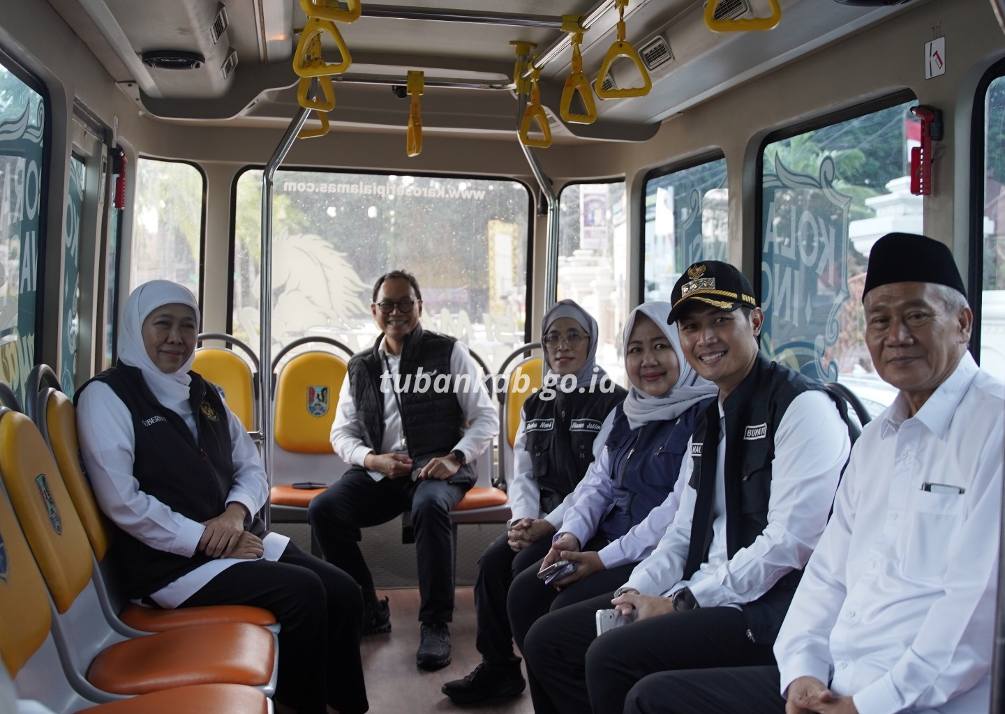 Gubernur Khofifah Jajal Bus Si Mas Ganteng, Apresiasi Inovasi Transportasi Publik Kabupaten Tuban