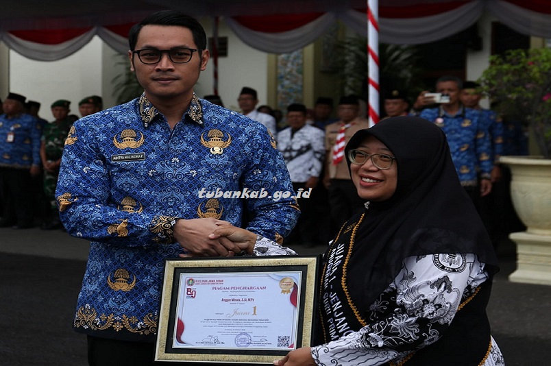 Tubankab – Momentum peringatan HUT Korpri, Hari Kesehatan Nasional (HKN), Hari Guru Nasional (HGN) dan HUT PGRI di Kabupaten Tuban menjadi lebih istimewa pada Senin (01/12). Dalam upacara yang digelar di halaman Kantor Pemkab Tuban, Bupati Tuban Aditya Halindra Faridzky, SE., menyerahkan penghargaan kepada Anggun Winata, guru Kimia SMAN 1 Tuban, yang sukses meraih Juara 1 Anugerah Guru Prima (AGP) Tingkat Provinsi Jawa Timur 2025.
