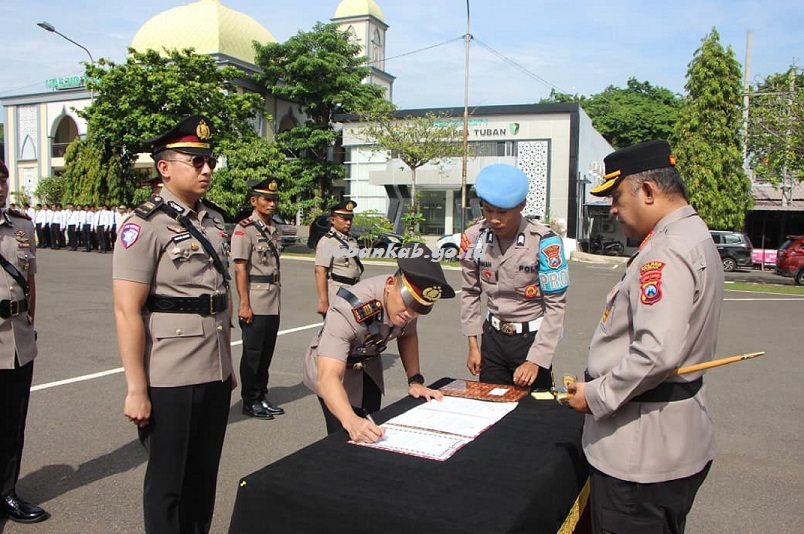 Kapolres juga mengucapkan terima kasih dan penghargaan yang setinggi-tingginya kepada pejabat lama atas dedikasi dan pengabdian selama bertugas di Polres Tuban.