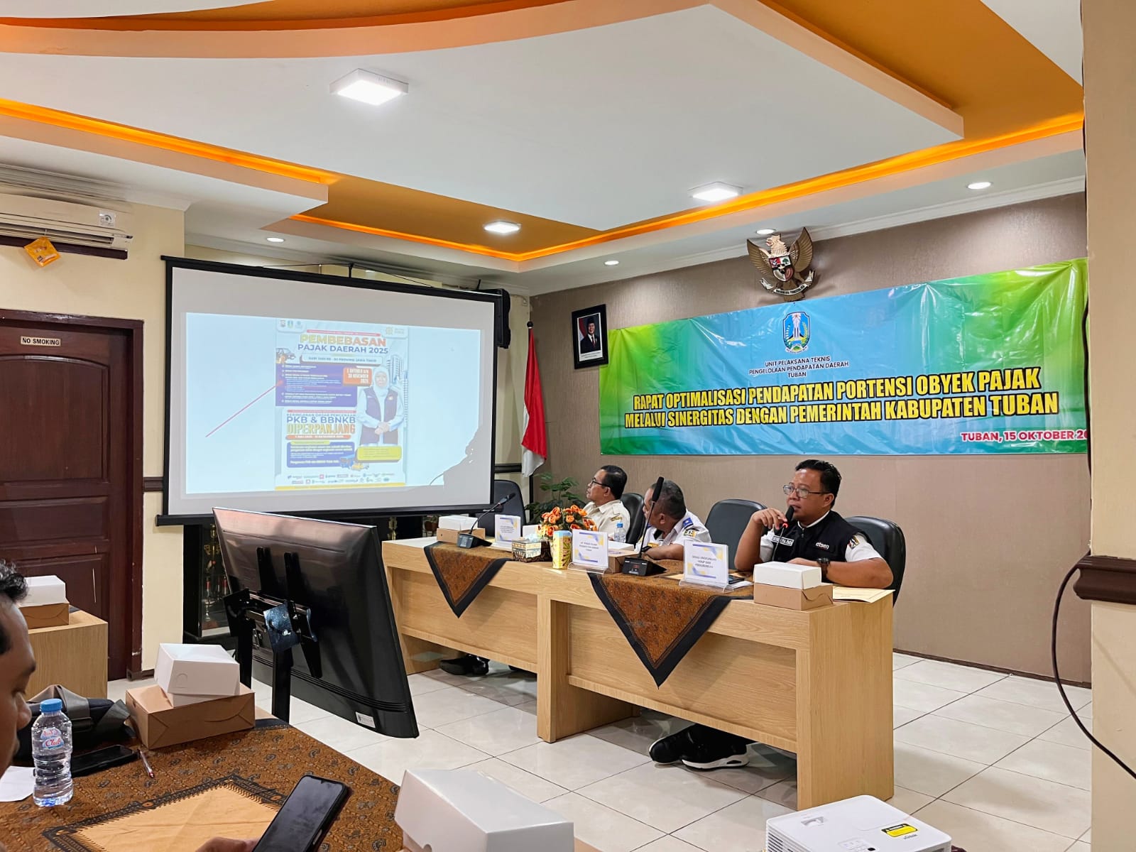 Tubankab- Dalam rangka mengoptimalkan potensi objek pajak kendaraan selama masa pemutihan 1 Oktober hingga 30 November 2025, Unit Pelaksana Teknis Pengelolaan Pendapatan Daerah (UPT PPD) Tuban menggelar pertemuan di ruang rapat kantor setempat, Rabu (15/10).