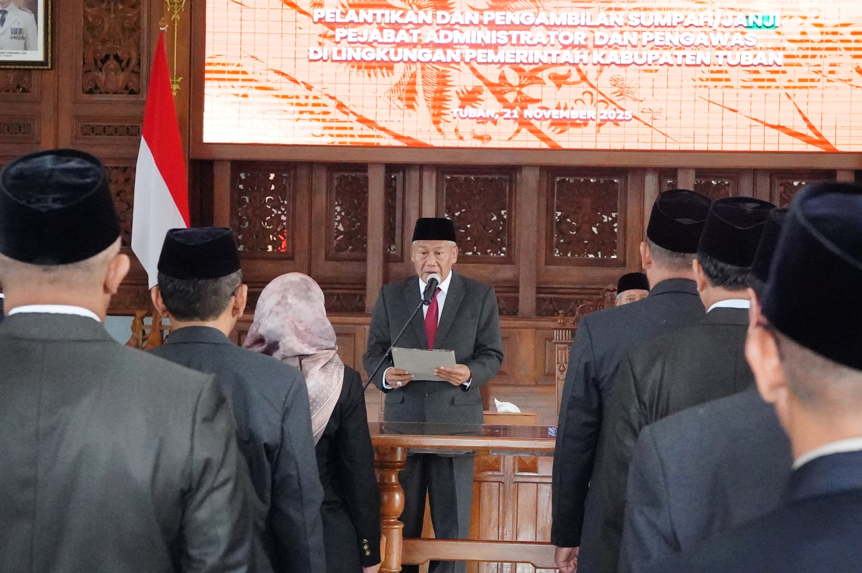 Tubankab - Wakil Bupati Tuban, Drs. Joko Sarwono melantik dan mengambil sumpah 8 pejabat Administrator dan Pengawas di Lingkup Pemkab Tuban, Jumat (21/11).