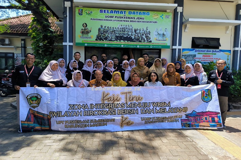 Tubankab – Unit Organisasi Bersifat Fungsional (UOBF) Puskesmas Jenu Kabupaten Tuban kembali menjadi tujuan studi banding bagi instansi lain yang tengah berproses menuju Wilayah Birokrasi Bersih dan Melayani (WBBM). Pada Selasa (14/10), rombongan dari Puskesmas Sumbersari, Kabupaten Madiun, melakukan kunjungan kaji banding untuk mempelajari praktik baik atau best practices pembangunan Zona Integritas (ZI) yang diterapkan di Puskesmas Jenu.