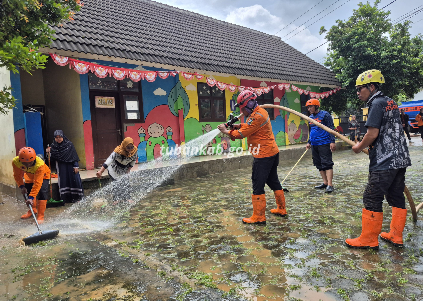 Selain rumah warga, sejumlah fasilitas umum juga terdampak dan membutuhkan pembersihan pascabanjir. Personel diterjunkan untuk melakukan pembersihan di MI Salafiyah, TK Salafiyah, SDN Sumurgung 1, SDN Ngrayung 1, serta SDN Genangharjo 2. Kalaksa BPBD Tuban memastikan proses pembersihan terus dilakukan agar aktivitas masyarakat dan kegiatan belajar mengajar segera kembali normal.