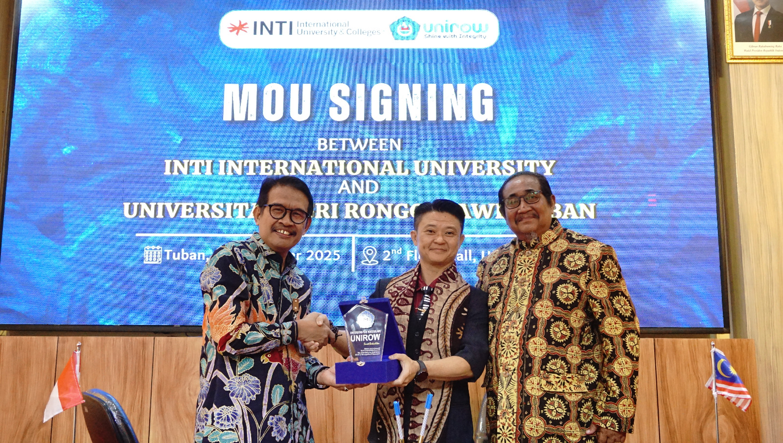 Kabar gembira tersebut disampaikan oleh Profesor. Dr. Sam Toong Hai, Ph.D., ketika melakukan penandatanganan Memorandum of Understanding (MoU) dengan Unirow Tuban, Senin (27/10).