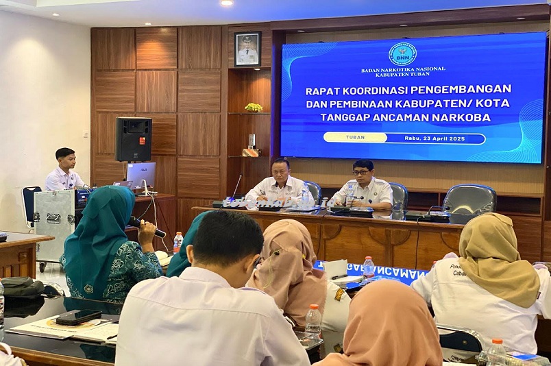 Tubankab – Badan Narkotika Nasional Kabupaten (BNNK) Tuban menggelar rapat koordinasi lintas sektor dalam rangka mewujudkan Kabupaten/Kota Tanggap Ancaman Narkoba, Rabu (23/4), di Ruang Rapat Dandang Wacono Setda Tuban.