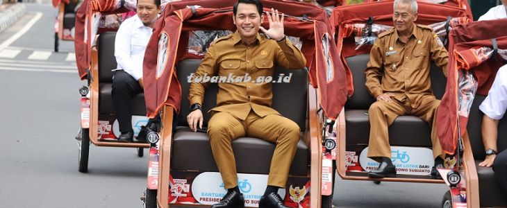 Tubankab - Bupati Tuban bersama Yayasan Gerakan Solidaritas Nasional (YGSN) dan Forkopimda Tuban menyerahkan bantuan Becak Listrik dari Presiden RI Prabowo Subianto, Senin (29/12). Bertempat …