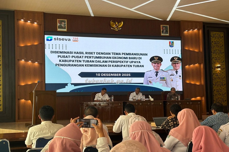 Tubankab - Dalam rangka memperkuat arah kebijakan penanggulangan kemiskinan berbasis data, Pemerintah Kabupaten Tuban melalui Badan Perencanaan Pembangunan, Riset, dan Inovasi Daerah (Bapperida) menggelar Diseminasi Hasil Riset Pembangunan Pusat-Pusat Pertumbuhan Ekonomi Baru Tahun 2025 di Ruang Aula Dinas Pendidikan Kabupaten Tuban, Rabu (10/12).