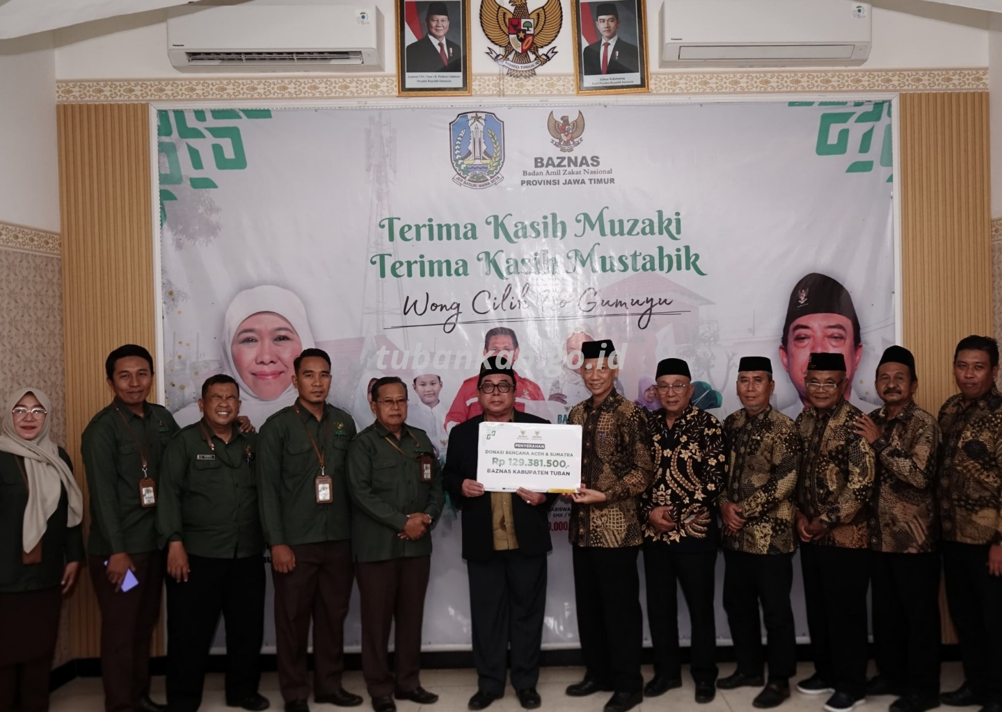 Tubankab - Badan Amil Zakat Nasional (BAZNAS) Kabupaten Tuban menyalurkan donasi kemanusiaan bagi korban bencana di wilayah Aceh dan Sumatra melalui BAZNAS Provinsi Jawa Timur sebesar Rp129.381.500. Penyerahan donasi dilaksanakan di Kantor BAZNAS Provinsi Jawa Timur, Rabu (14/1).