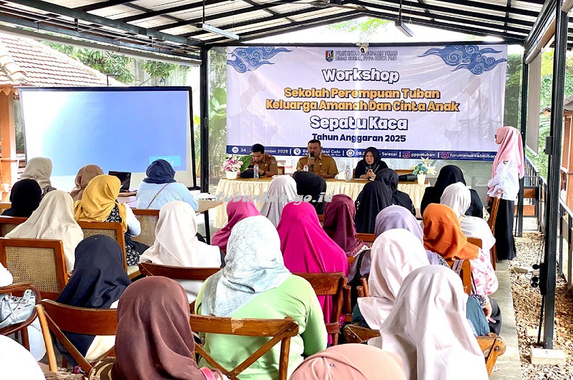 Tubankab - Dinas Sosial, Pemberdayaan Perempuan dan Perlindungan Anak serta Pemberdayaan Masyarakat dan Desa (Dinsos P3A serta PMD) Kabupaten Tuban menggelar workshop Sekolah Perempuan Tuban Keluarga Amanah dan Cinta Anak (Sepatu Kaca) di salah satu cafe di Tuban, Senin (24/11).