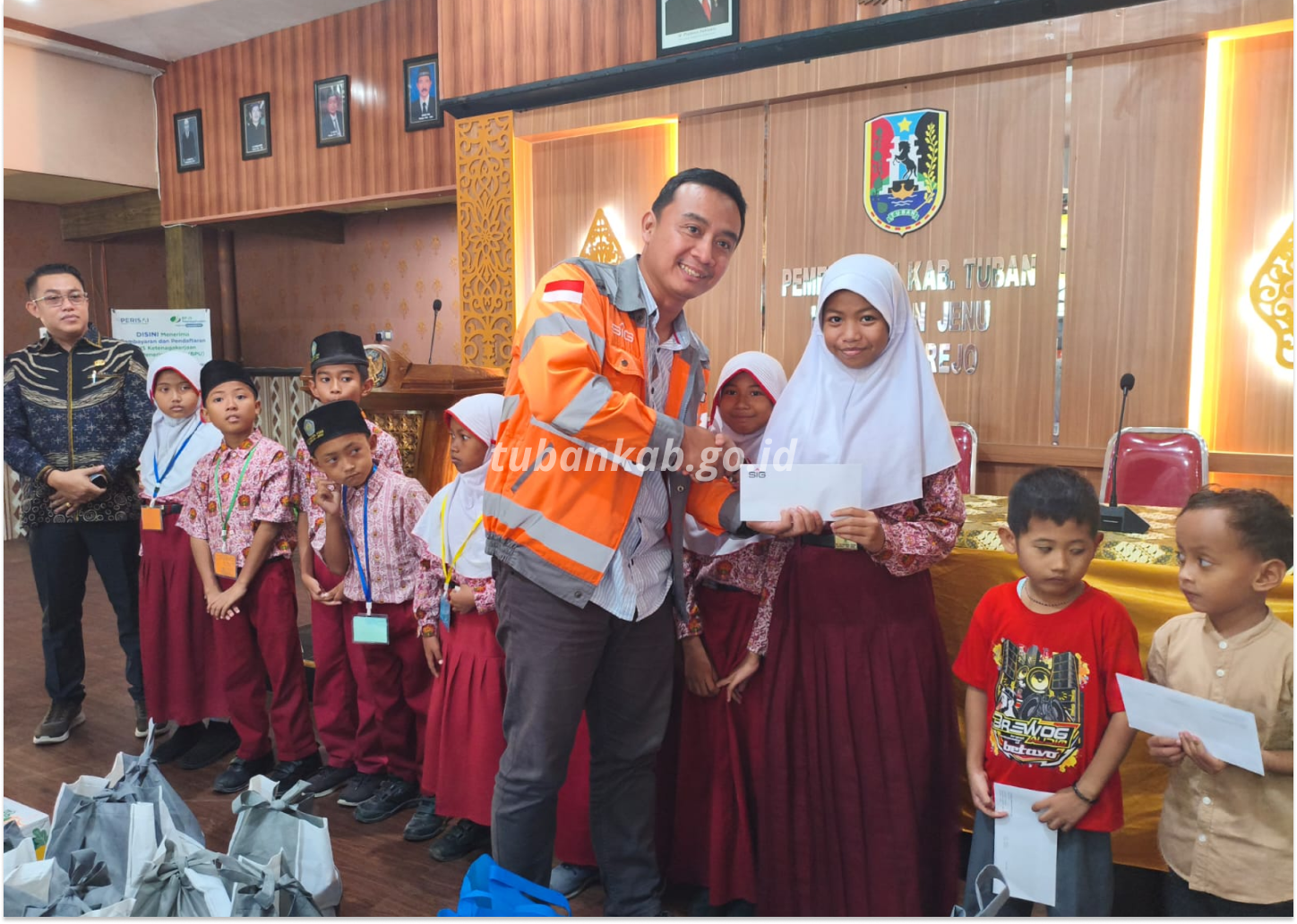 Pada kegiatan serah terima bantuan sembako Ramadan dan santunan anak yatim di Balai Desa Socorejo, Kecamatan Jenu, Senin (9/3), selain dihadiri oleh Kepala Desa Socorejo, Zubas Arief Rahman Hakim, dan Corporate Community Development Officer, Suhadak, hadir pula Manager of Port Operation SIG Pabrik Tuban, Onni Agustya Rahman, serta perusahaan penyedia jasa (vendor) di area Tersus SIG Pabrik Tuban yang turut bergabung bersama SIG untuk menyampaikan bantuan. Hal tersebut karena Desa Socorejo merupakan desa terdekat di area operasional Tersus SIG Pabrik Tuban.