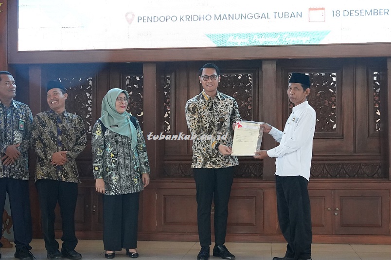 Bupati bersama Kepala BPN dan Kemenag Tuban Serahkan Sertipikat Tanah