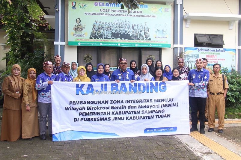 Dalam kunjungan tersebut, rombongan diterima di Puskesmas Jenu yang telah meraih predikat WBBM. Kegiatan ini menjadi forum pembelajaran langsung terkait praktik kerja dan pengelolaan layanan publik di tingkat fasilitas kesehatan.