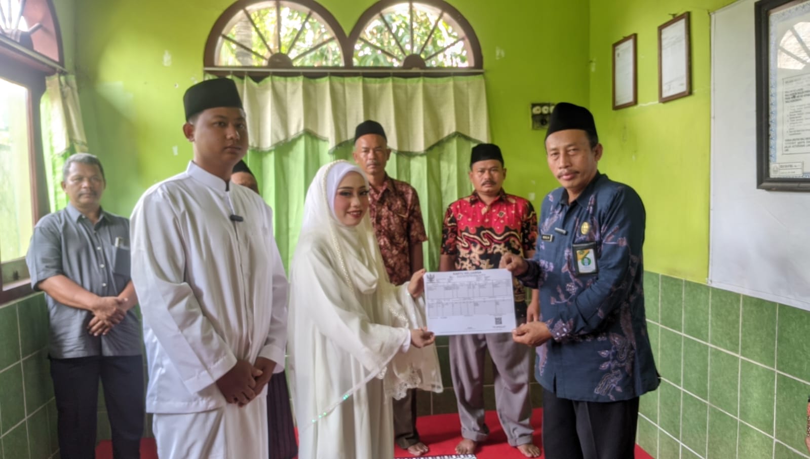 Foto : Penyerahan dokumen Adminduk kepada pasangan pengantin melalui inovasi "Pelangi Biru"