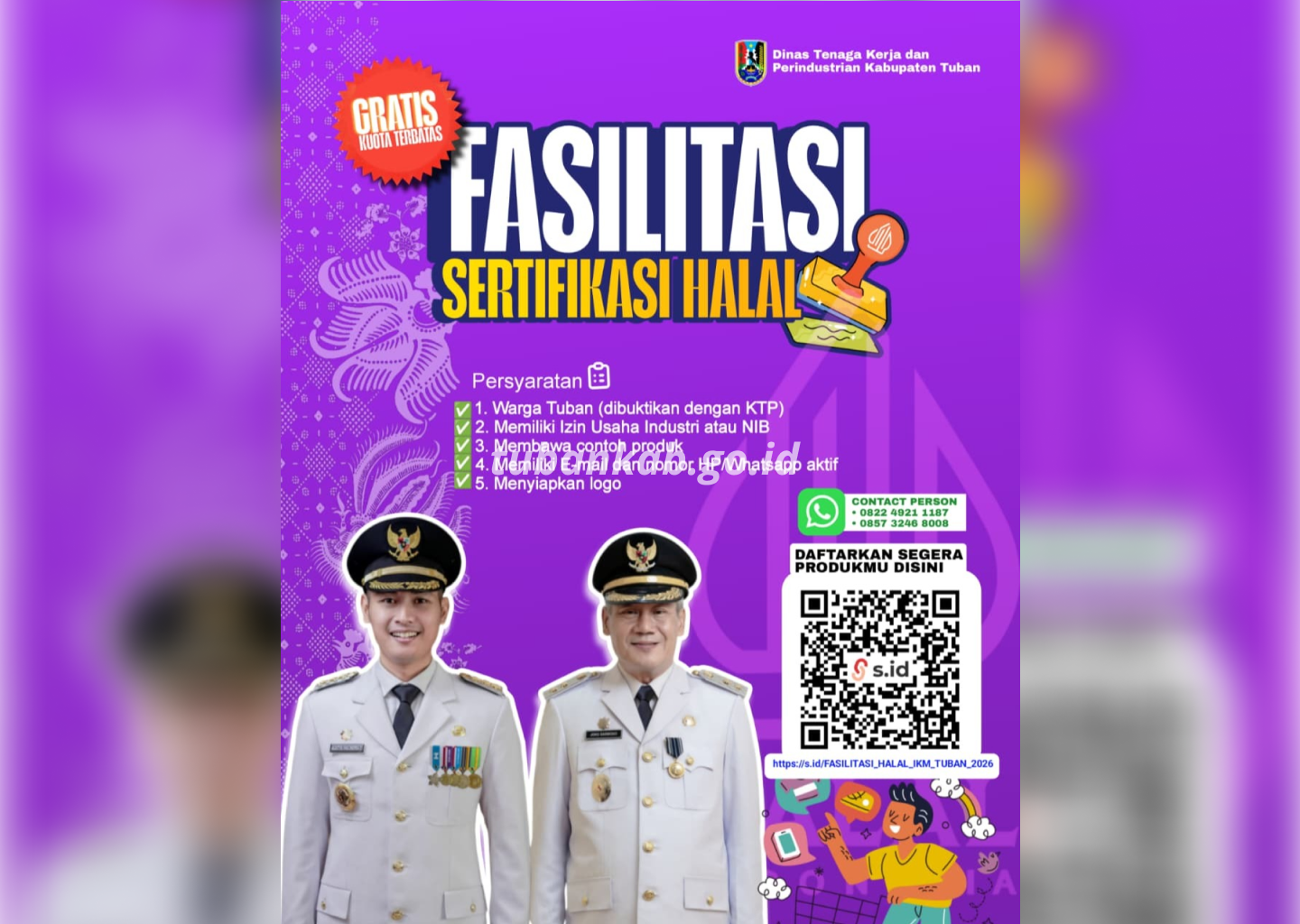 Adapun pengajuan pendaftaran sertifikasi halal produk tersebut dapat dilakukan melalui tautan https://s.id/FASILITASI_HALAL_IKM_TUBAN_2026.