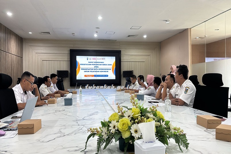 Tubankab — Dinas Kependudukan dan Pencatatan Sipil (Disdukcapil) Tuban menggelar Rapat Koordinasi Tindaklanjut Persetujuan Perjanjian Kerja Sama (PKS) Pemanfaatan Data Kependudukan untuk Pelayanan Publik di Ruang Rapat Lantai 3 Mall Pelayanan Publik, Rabu (03/09).
