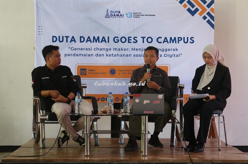 Tubankab – Duta Damai Badan Nasional Penanggulangan Terorisme (BNPT) Provinsi Jawa Timur sukses menggelar program "Duta Damai Goes to Campus" di Institut Teknologi dan Bisnis (ITB) Tuban pada Sabtu (18/10). Mengangkat tema “Generasi Change Maker: Menjadi Penggerak Perdamaian dan Ketahanan Sosial di Era Digital,” kegiatan ini diikuti antusias oleh 150 mahasiswa ITB Tuban.