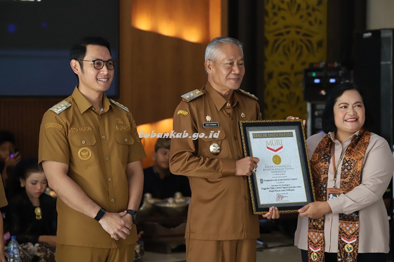 Tubankab - Pemerintah Kabupaten Tuban kembali mencatatkan prestasi tingkat nasional setelah menerima penghargaan Museum Rekor Dunia Indonesia (MURI) untuk unggahan video literasi digital guru dan siswa dengan karya sastra terbanyak. Rekor yang diajukan sebanyak 20.000 karya tersebut meningkat tajam menjadi 85.000 karya berkat tingginya partisipasi peserta dari PAUD, SD, SMP hingga PKBM di seluruh Kabupaten Tuban.