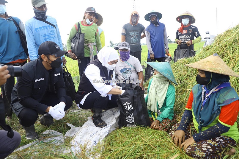 Tubankab - Gubernur Jawa Timur, Dra. Khofifah Indar Parawansa bersama Bupati Tuban, Aditya Halindra Faridzky, SE., dan Forkopimda Tuban melakukan panen raya padi di lahan pertanian Desa Bandungrejo, Kecamatan Plumpang (01/02). Pada kesempatan ini, Bupati Tuban mengukuhkan jajaran pengurus Petani Milenial Ronggolawe (PMR).