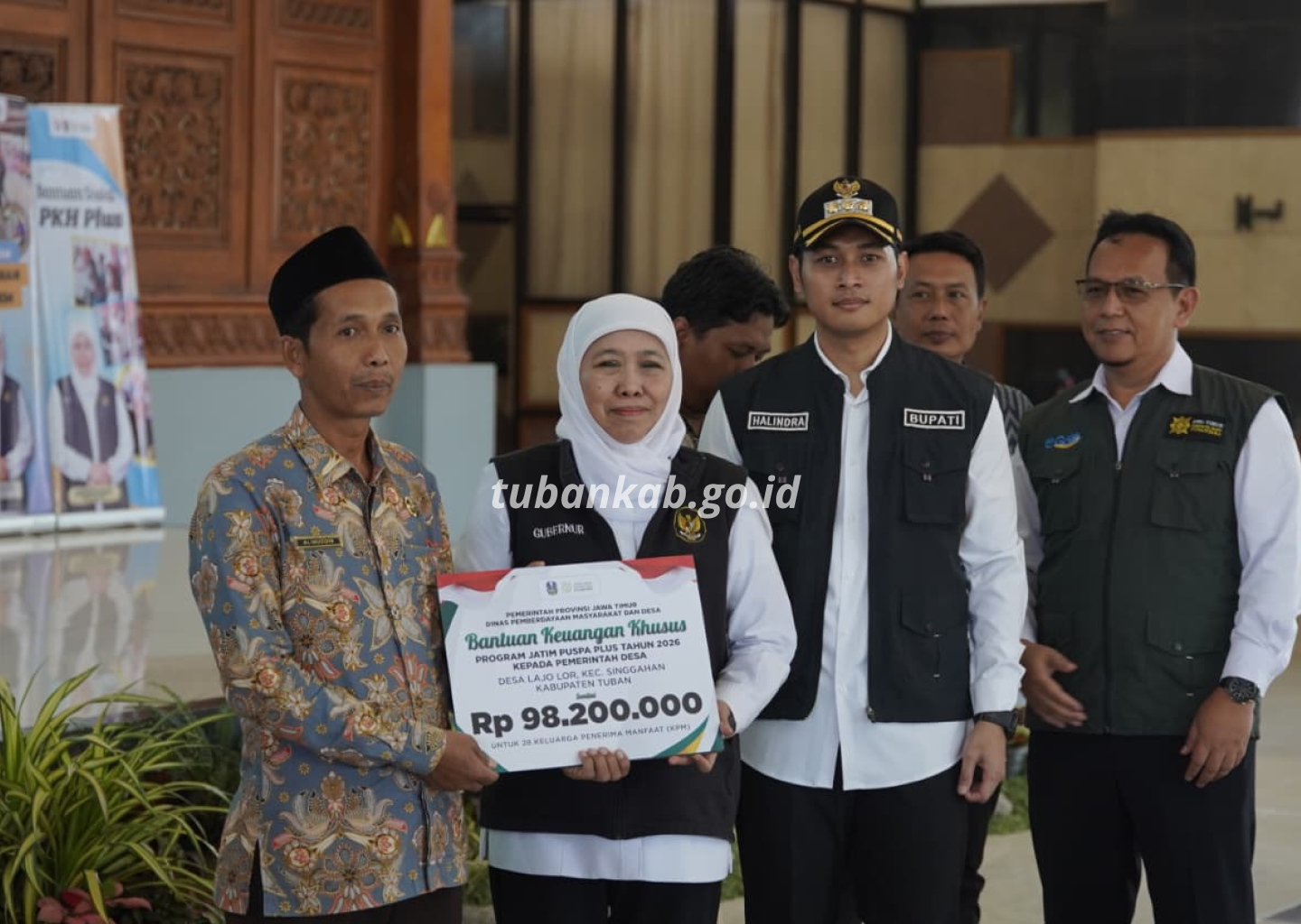 Dalam kesempatan tersebut, Bupati Tuban Aditya Halindra Faridzky menyampaikan apresiasi atas perhatian Pemerintah Provinsi Jawa Timur atas arahan Gubernur Khofifah Indar Parawansa yang terus memberikan dukungan kepada masyarakat Tuban melalui berbagai program sosial dan pemberdayaan ekonomi.