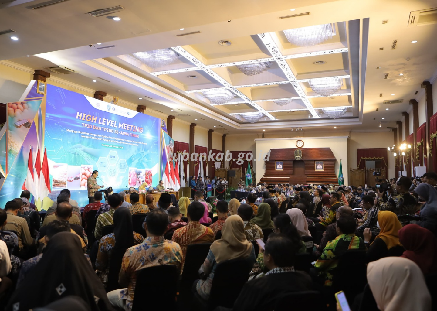 Tubankab - Gubernur Jawa Timur Khofifah Indar Parawansa memimpin High Level Meeting Tim Pengendalian Inflasi Daerah dan Tim Percepatan serta Perluasan Digitalisasi Daerah se-Jawa Timur Tahun 2026 di Gedung Negara Grahadi, Kamis (26/2). Pertemuan diikuti bupati dan wali kota se-Jawa Timur, termasuk Bupati Tuban Aditya Halindra Faridzky, S.E.