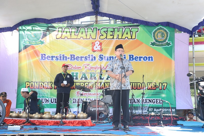 Tubankab - Wakil Bupati Tuban Ir. H. Noor Nahar Hussein, M.Si hadiri acara Jalan Sehat dan Bersih-Bersih Sungai Beron dalam rangka Harlah Pondok Pesantren Manbaul Huda (Al Hadi) ke-17 di Desa Banjararum, Kecamatan Rengel, Minggu (07/04). Hadir pula pada kegiatan ini anggota DPRD Tuban, Camat Rengel dan kepala desa, serta masyarakat sekitar.