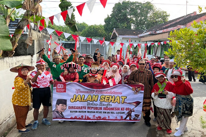 Jalan Sehat Guyub Rukun RT 02 RW 06 Latsari Semarakkan HUT ke-80 RI