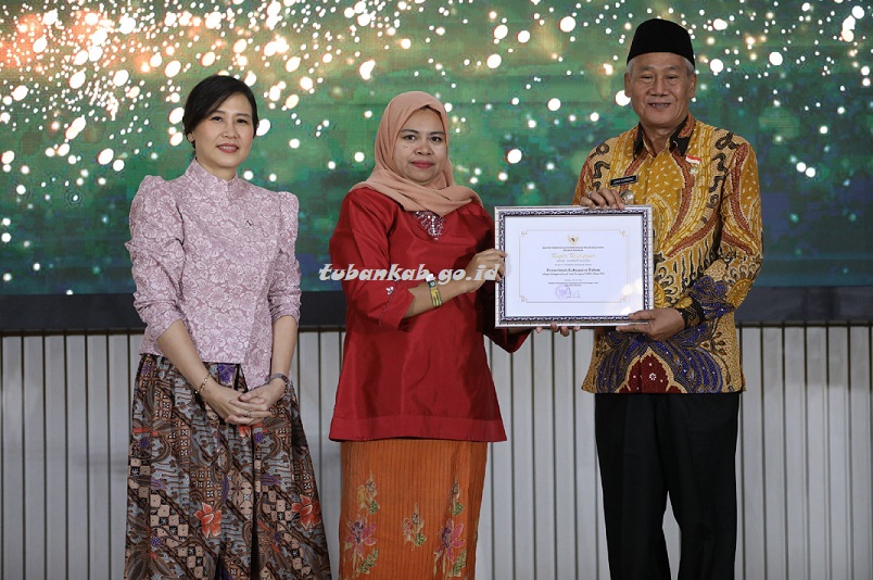 Penghargaan tersebut diserahkan langsung oleh Ketua Komisi Perlindungan Anak Indonesia (KPAI), Ai Maryati Solihah bersama Wamen PPPA RI, Veronica Tan kepada kepada Wakil Bupati Tuban, Drs. Joko Sarwono dalam Penganugerahan Kabupaten/Kota Layak Anak (KLA) Tahun 2025 yang digelar di Jakarta, Kamis (08/08).