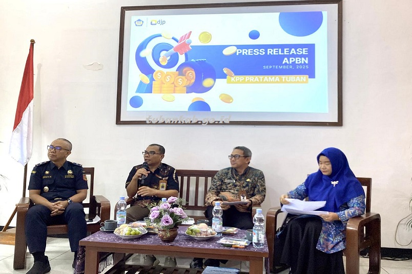 Tubankab - Kantor Pelayanan Perbendaharaan Negara (KPPN) Tuban bersama KPP Pratama Tuban dan BPS Tuban menggelar Media Briefing APBN Kabupaten Tuban periode sampai dengan 31 Agustus 2025 di ruang pertemuan BPS setempat, Kamis (18/09).