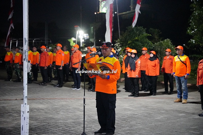 Wakil Bupati Tuban, Drs. Joko Sarwono memimpin Apel Pembukaan Latihan Table Top Exercise. Dalam sambutannya, Wabup Tuban mengungkapkan upaya mitigasi bencana memegang peran penting dalam kelangsungan hidup manusia. Dengan menguasai mitigasi bencana, potensi dan dampak bencana dapat ditekan seminimal mungkin. “Kita tidak pernah tahu kapan bencana akan terjadi, karena itu kita harus memiliki pengetahuan tentang mitigasi bencana,” tuturnya.
