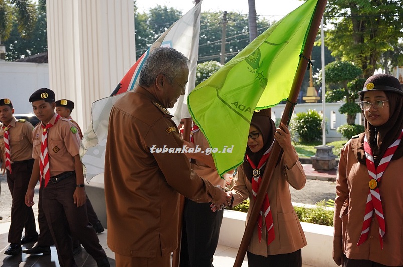 Pelepasan anggota Pramuka yang menjadi kontingen kabupaten ini berlangsung penuh semangat di Rumah Dinas Wakil Bupati Tuban, Senin (16/06).