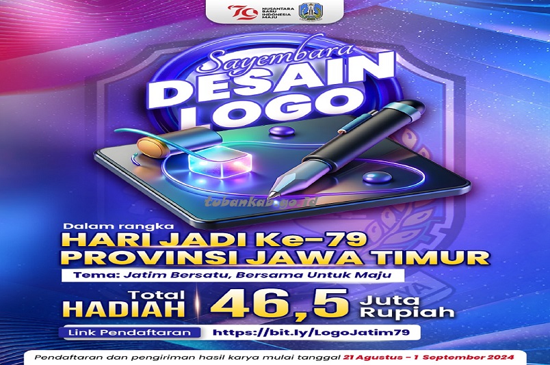 Tubankab - Dalam rangka memperingati Hari Jadi ke-79 Provinsi Jawa Timur, Pemerintah Provinsi Jatim menyelenggarakan sayembara desain logo dengan tema "Jatim Bersatu, Bersama Untuk Maju". Sayembara ini terbuka bagi individu atau kelompok yang memiliki minat di bidang desain grafis, dengan total hadiah sebesar Rp 46,5 juta.