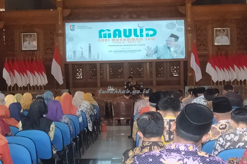 Tubankab - Pemkab Tuban menggelar peringatan Maulid Nabi Muhammad SAW tahun 1446 H/ 2024 M di Pendapa Krida Manunggal Tuban, Kamis (10/10).