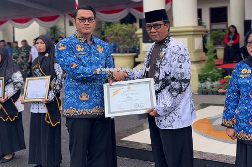 Penyerahan penghargaan menjadi rangkaian Upacara Peringatan HUT Korpri ke-54, HUT PGRI ke-80, Hari Guru Nasional dan Hari Kesehatan Nasional ke-61 tahun 2025 Pemkab Tuban.