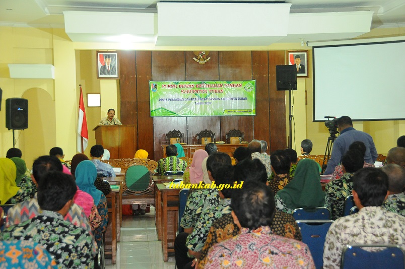 Demikian disampaikan oleh Asisten Pemerintahan Sekretariat Daerah Kabupaten Tuban Drs. Ahmad Amin Sutoyo selaku Plh Sekretaris Daerah Kabupaten Tuban saat membacakan sambutan tertulis Bupati Tuban dalam Pleno Dewan Ketahanan Pangan Kabupaten Tuban tahun 2017 di gedung Korpri, Kamis (14/09).