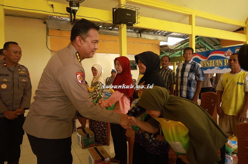 Tubankab - Pelaksana tugas (Plt) Kapolres Tuban Kombes Pol Agung Setyo Nugroho, S.I.K memimpin langsung kegiatan pemberian bantuan sosial kepada warga yang terdampak angin puting beliung di wilayah Kecamatan Semanding.
