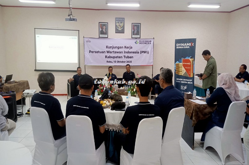 Tubankab - Persatuan Wartawan Indonesia (PWI) Kabupaten Tuban melakukan kunjungan kerja ke PT. Solusi Bangun Indonesia (SBI) Tbk - Pabrik Tuban di Desa Merkawang, Kecamatan Tambakboyo, Kabupaten Tuban, Rabu (15/10).