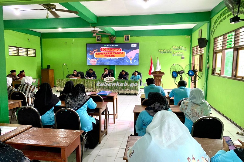 Tampak dalam giat tersebut puluhan guru, komite dan para siswa mengikuti kegiatan yang diawali dengan sosialisasi oleh tim Satgas gabungan Pemkab Tuban yang terdiri dari unsur Disdik, Dinkes P2KB, Kemenag, Satpol PP dan Damkar serta Cabang Disdik Provinsi wilayah Bojonegoro-Tuban.