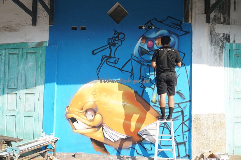 Tubankab - Berawal dari keprihatinan melihat kondisi perkampungan nelayan di Kota Tuban yang kumuh, Tubgraff atau Tuban Graffiti menggelar aksi peduli lingkungan dengan cara menghias dinding-dinding rumah di perkampungan nelayan Kota Tuban agar terlihat lebih indah dan menarik.