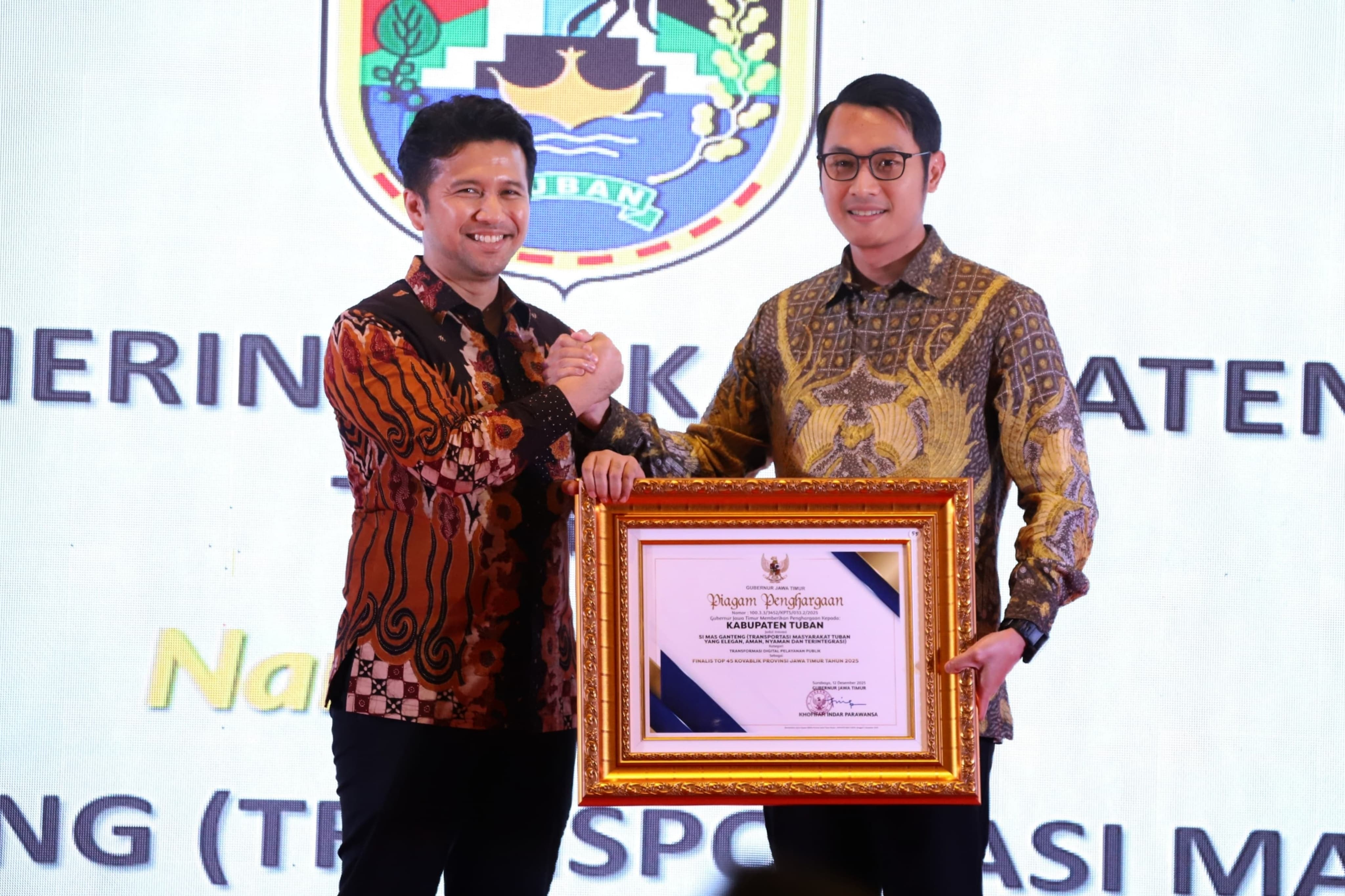 Tubankab – Setelah menyandang predikat sangat inovatif pada Innovative Goverment Award (IGA) 2025, Pemerintah Kabupaten Tuban kembali mencatatkan prestasi membanggakan melalui inovasi layanan transportasi publik Si Mas Ganteng (Transportasi Masyarakat Tuban yang Elegan, Aman, Nyaman, dan Terintegrasi).