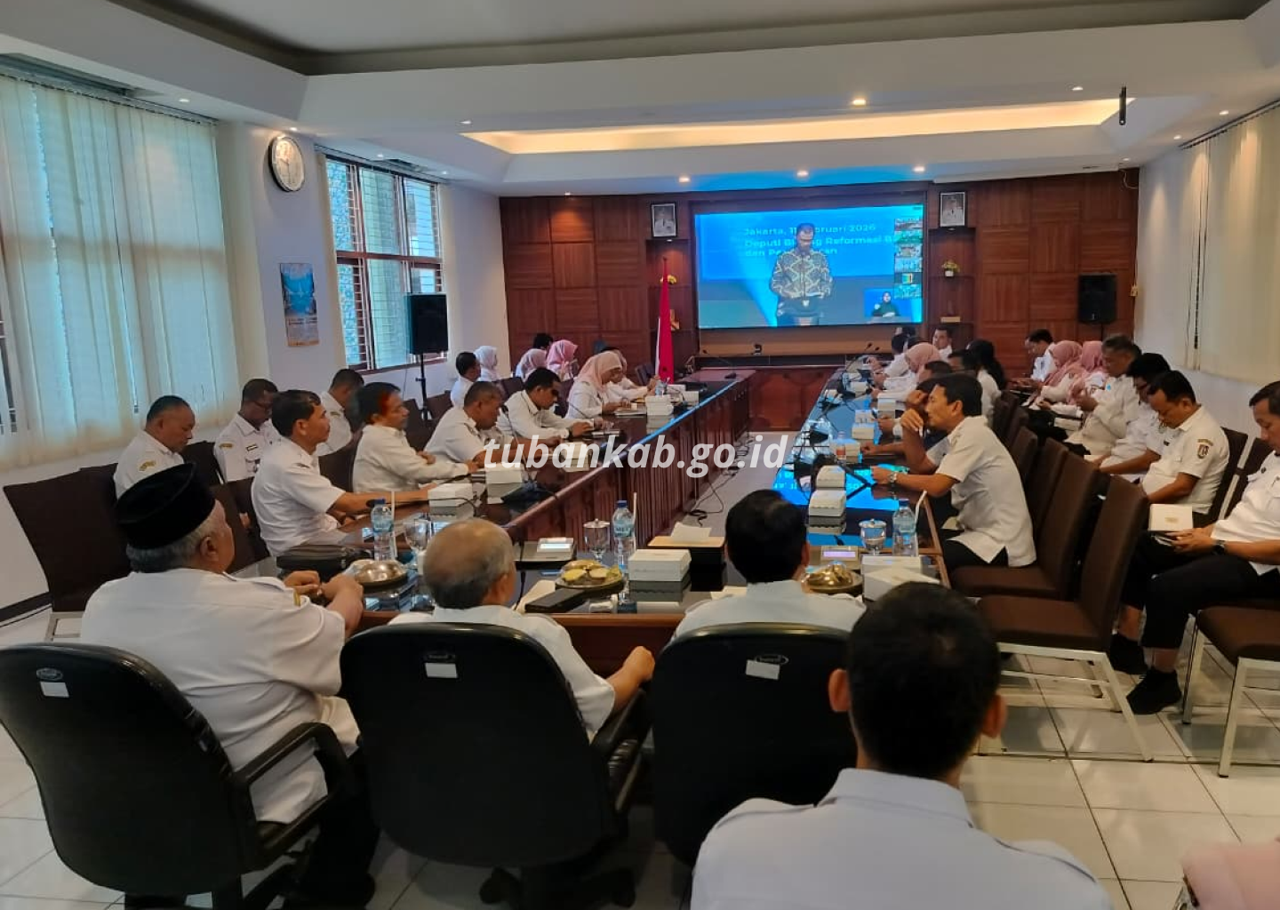 Tubankab - Pemerintah Kabupaten Tuban kembali mencatat capaian reformasi birokrasi setelah UOBF Puskesmas Kenduruan meraih Predikat Pembangunan Zona Integritas Menuju Wilayah Bebas dari Korupsi pada ajang SAKIP dan Zona Integritas Award 2025 yang digelar Kementerian PANRB secara daring, Rabu (11/2), dari Ruang Rapat Dandang Watjono Setda Tuban.