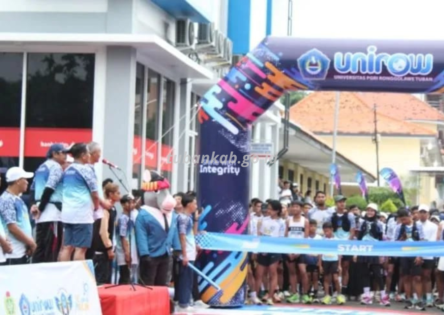 Tubankab – Peringatan Dies Natalis Universitas PGRI Ronggolawe (Unirow) Tuban ke-19 dimeriahkan dengan gelaran Unirow Run yang berlangsung meriah dan diikuti ratusan peserta, termasuk jajaran Forum Koordinasi Pimpinan Daerah (Forkopimda) Kabupaten Tuban, Minggu (18/1).