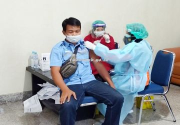 Tubankab - Kodim 0811 Tuban menggelar vaksinasi Covid-19 jenis Sinovac dengan menyasar para pekerja pabrik di Tuban yang diselenggarakan di Gedung …
